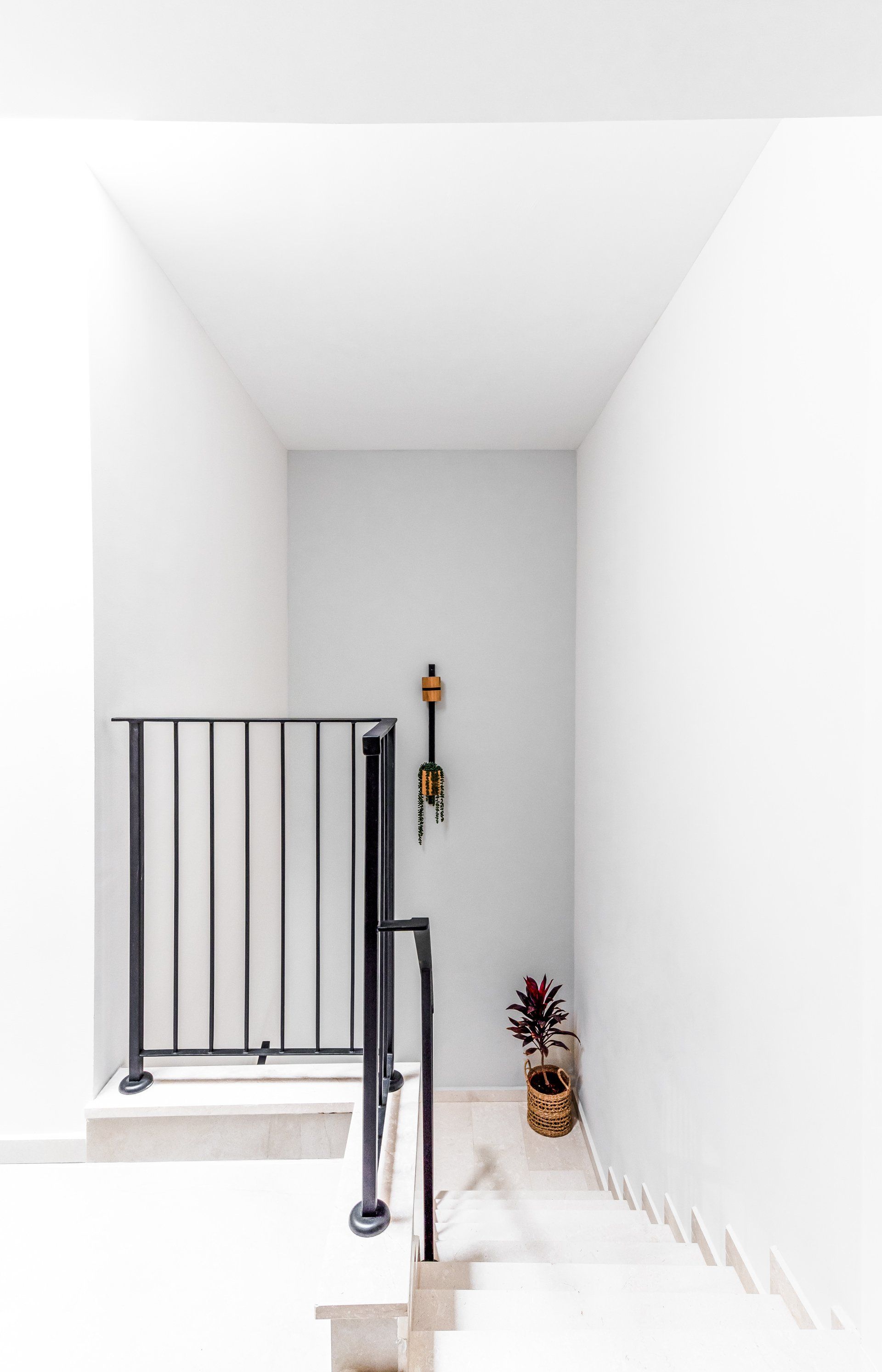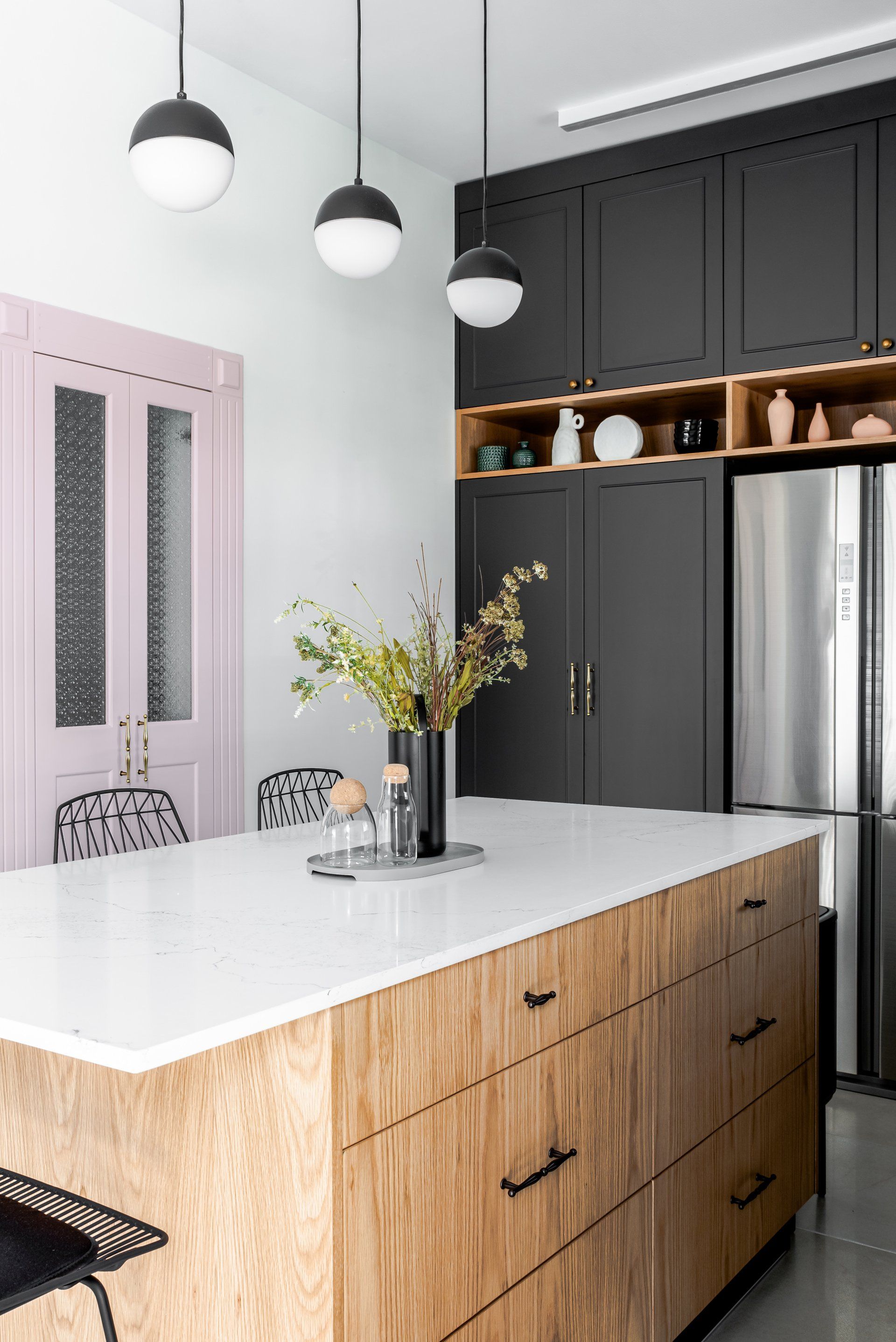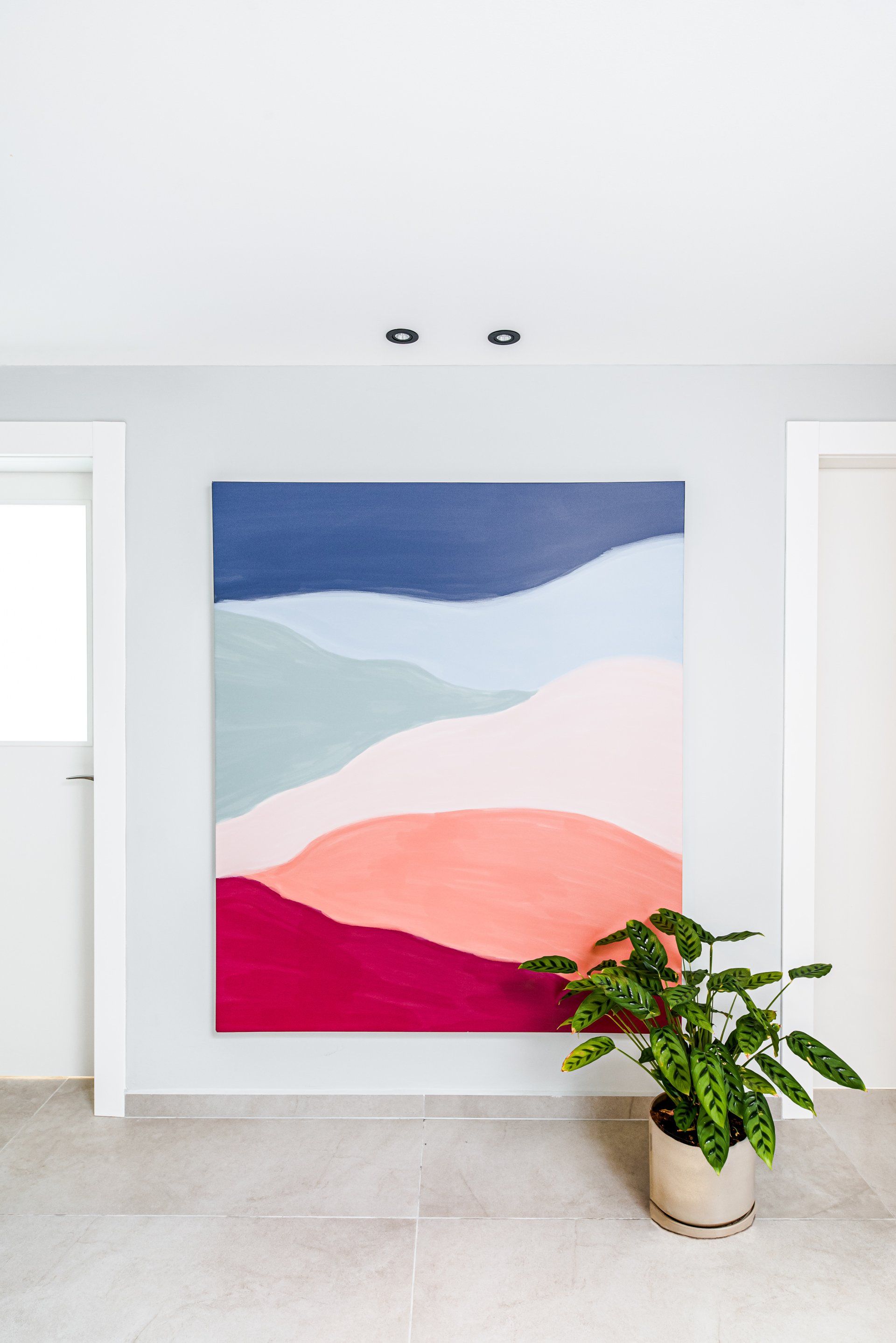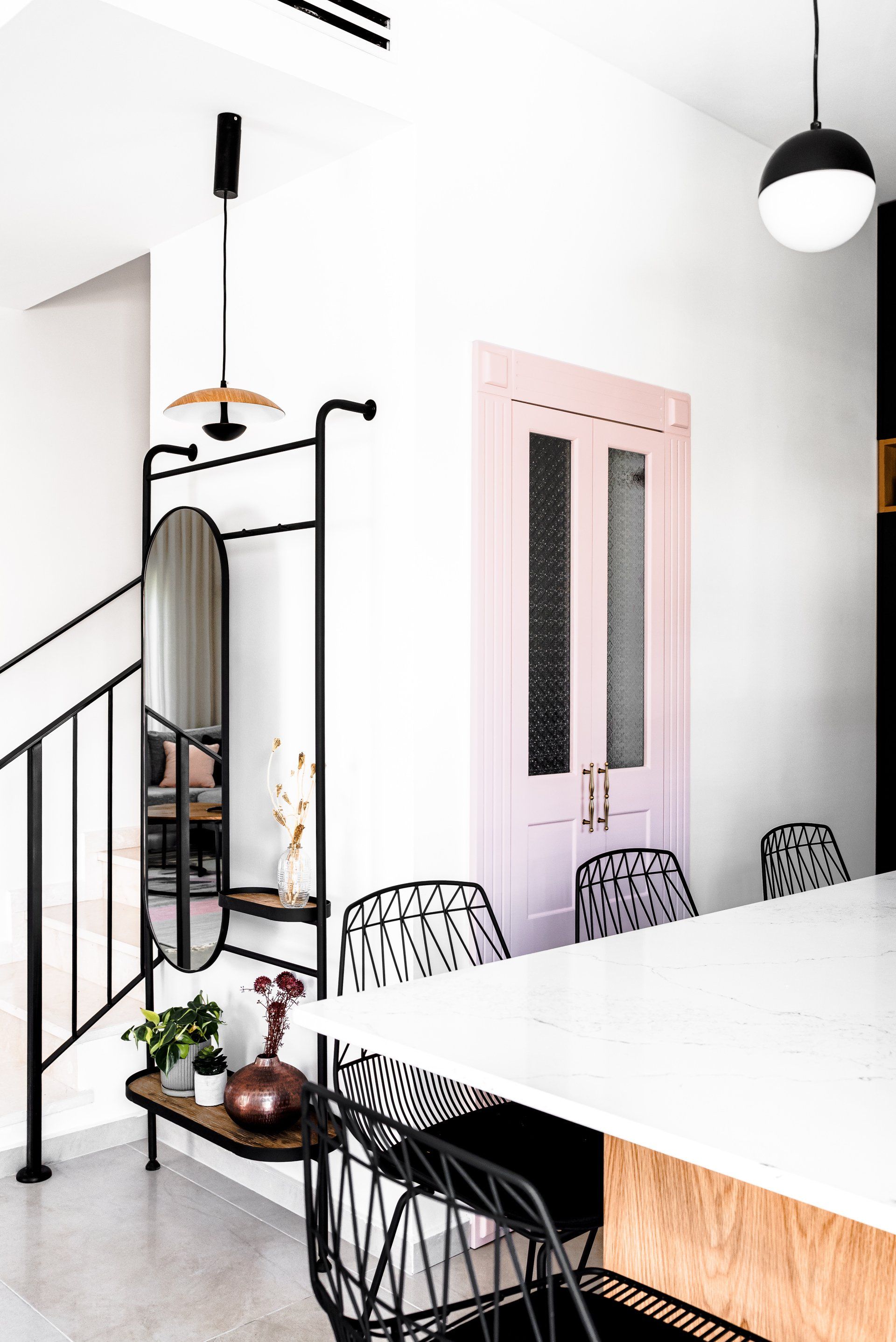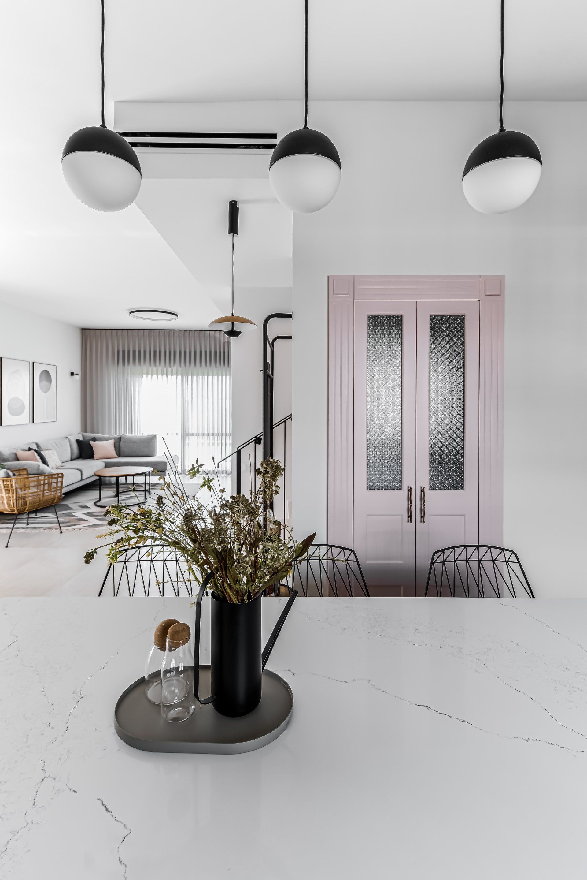 בית בקווים נקיים בשילוב של צבעים נעימים ולא שגרתיים (דלת ורודה במטבח!) ועוד